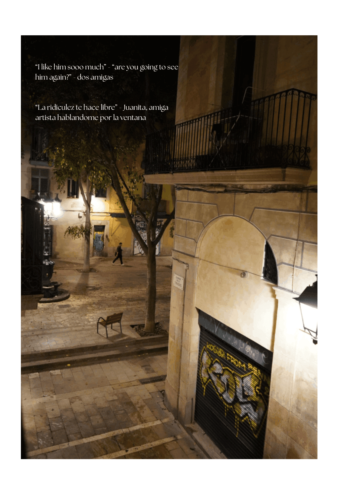 Chisme Callejera is a zine from when Eva lived in central Barcelona and heard lots of people talking outside her window. She started to write down what they said. This zine is a mix of quotes from the street outside her window and pictures of her neighborhood. Chisme Callejera translates from Spanish to “street gossip.”